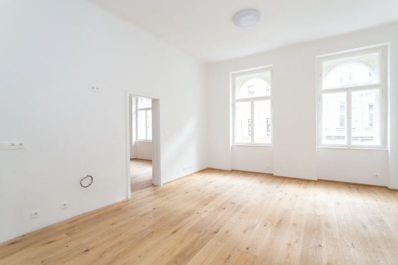 nové dřevěné parkety na podlahách v pokojích